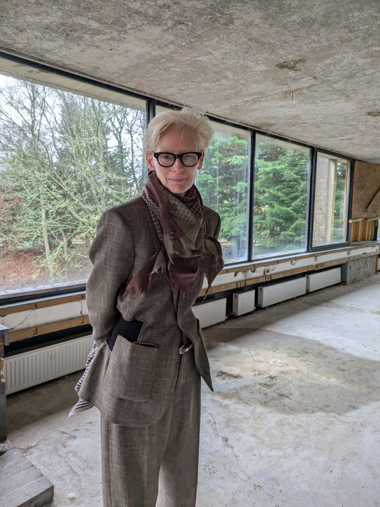 During her visit with Scottish Historic Buildings Trust (SHBT) and The Bernat Klein Foundation, Tilda met with Juliet Kinchin and Paul Stirton, owners of High Sunderland, the Peter Womersley-designed house next door that Klein called home for nearly sixty years.